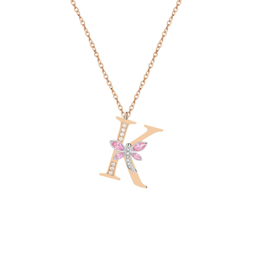 WİNGED LETTER A GOLD DİAMOND PİNK SAPPHİRE NECKLACE